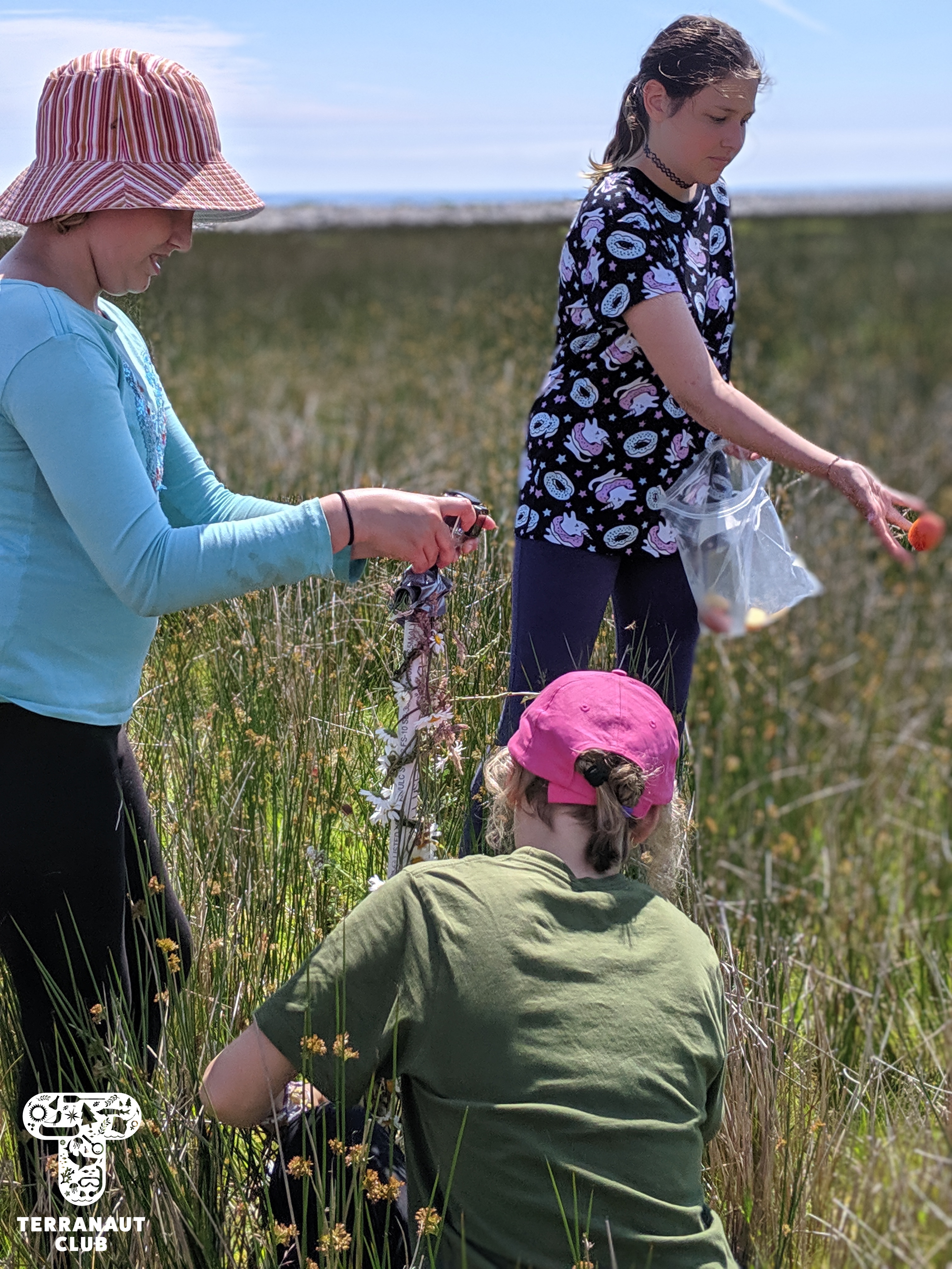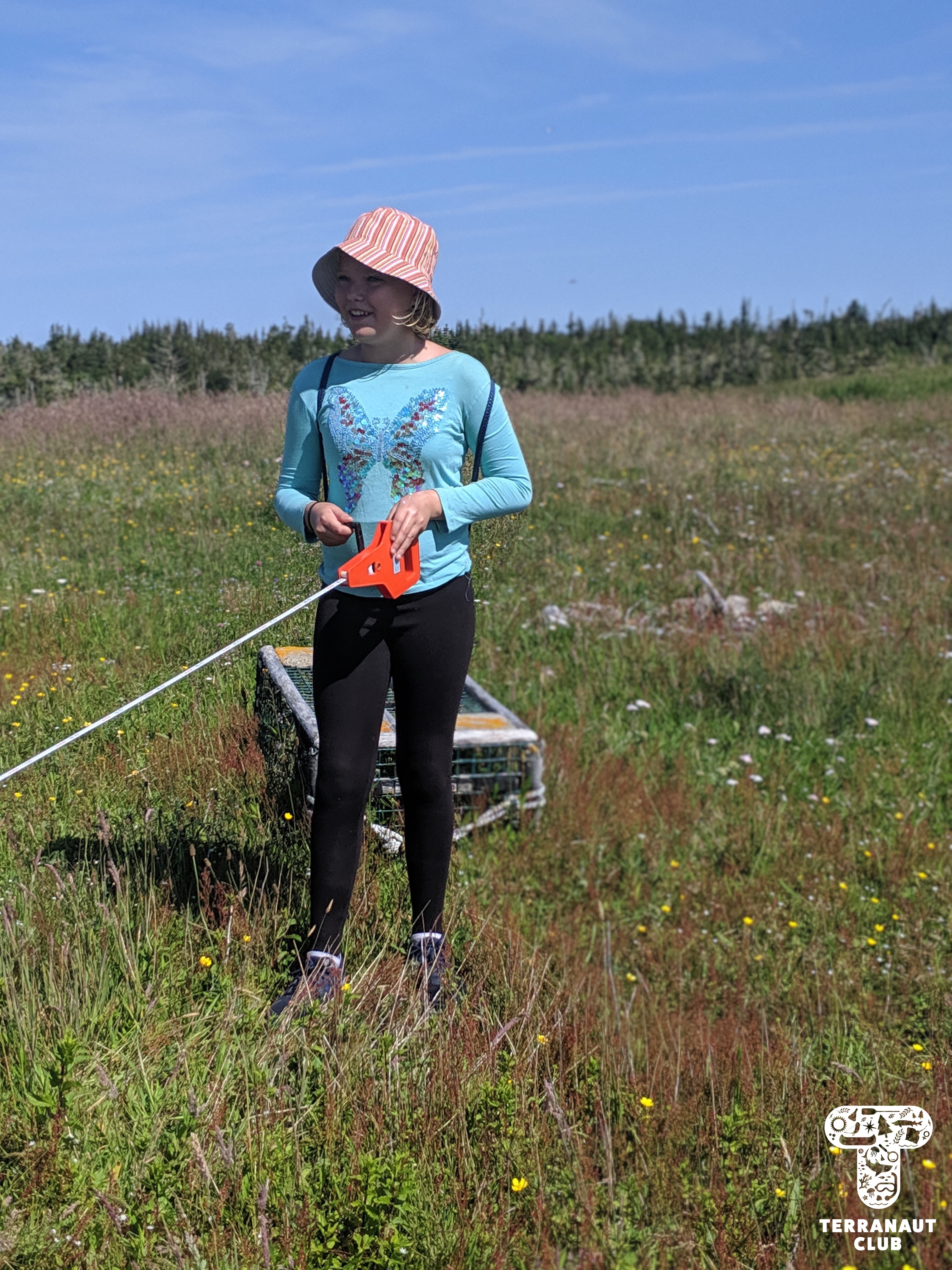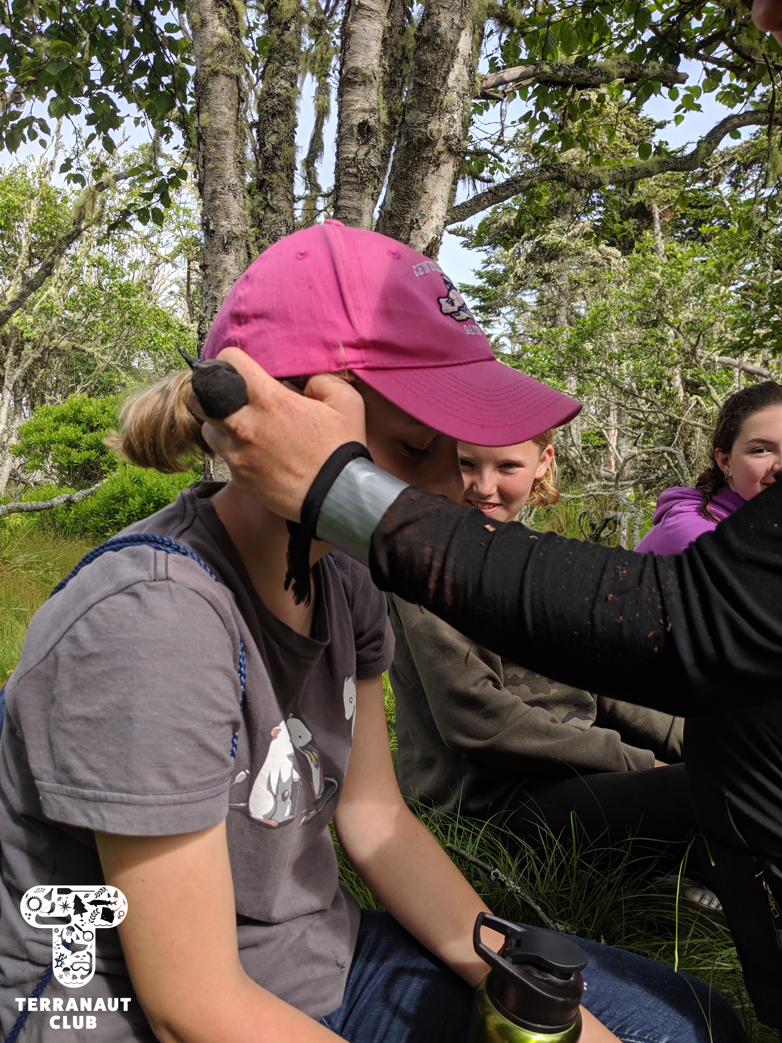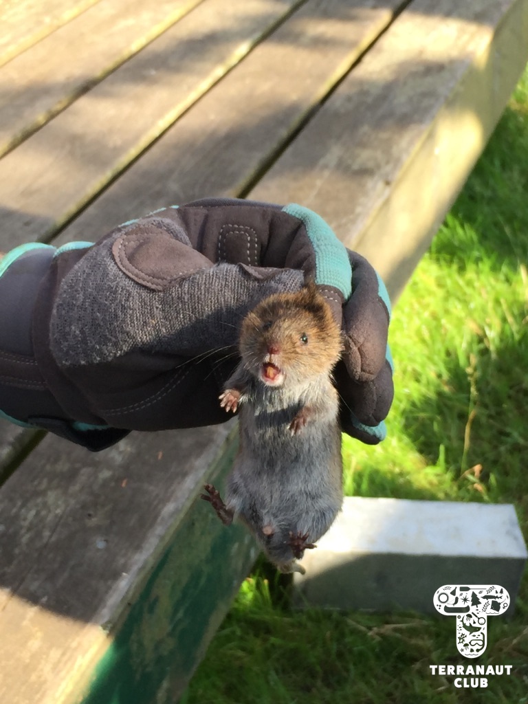 That afternoon, our girls also worked in teams to build BRUVs, or baited remote underwater video systems, to evaluate the Island’s biodiversity. Girls had to use engineering and teamwork skills to build their BRUVs, as well as consider the behaviour of the animals that they were trying to attract. One of our teams built a structure to place into the salt-water pond (except the pond wasn’t deep enough – lesson learned!), and our other team built one to set in the meadow and attract the Island’s deer. They baited the structure with apples, celery, tomatoes, and carrots, and we left the structure for the evening to record any passers-by. While our girls were lucky to see a group of deer investigating the structure when they returned to pick it up, sadly our GoPro’s batteries had died before then. We didn’t see much on the video footage the next day, but we did learn that deer don’t like tomatoes! Our participants also got to witness new research starting on the Island, which looks at the Island’s vole population to see if they’re predating on (eating) storm petrel eggs or chicks. To study this, Rielle set out small traps around our cabins, and found 1 vole that she collected a fur and fecal sample from.