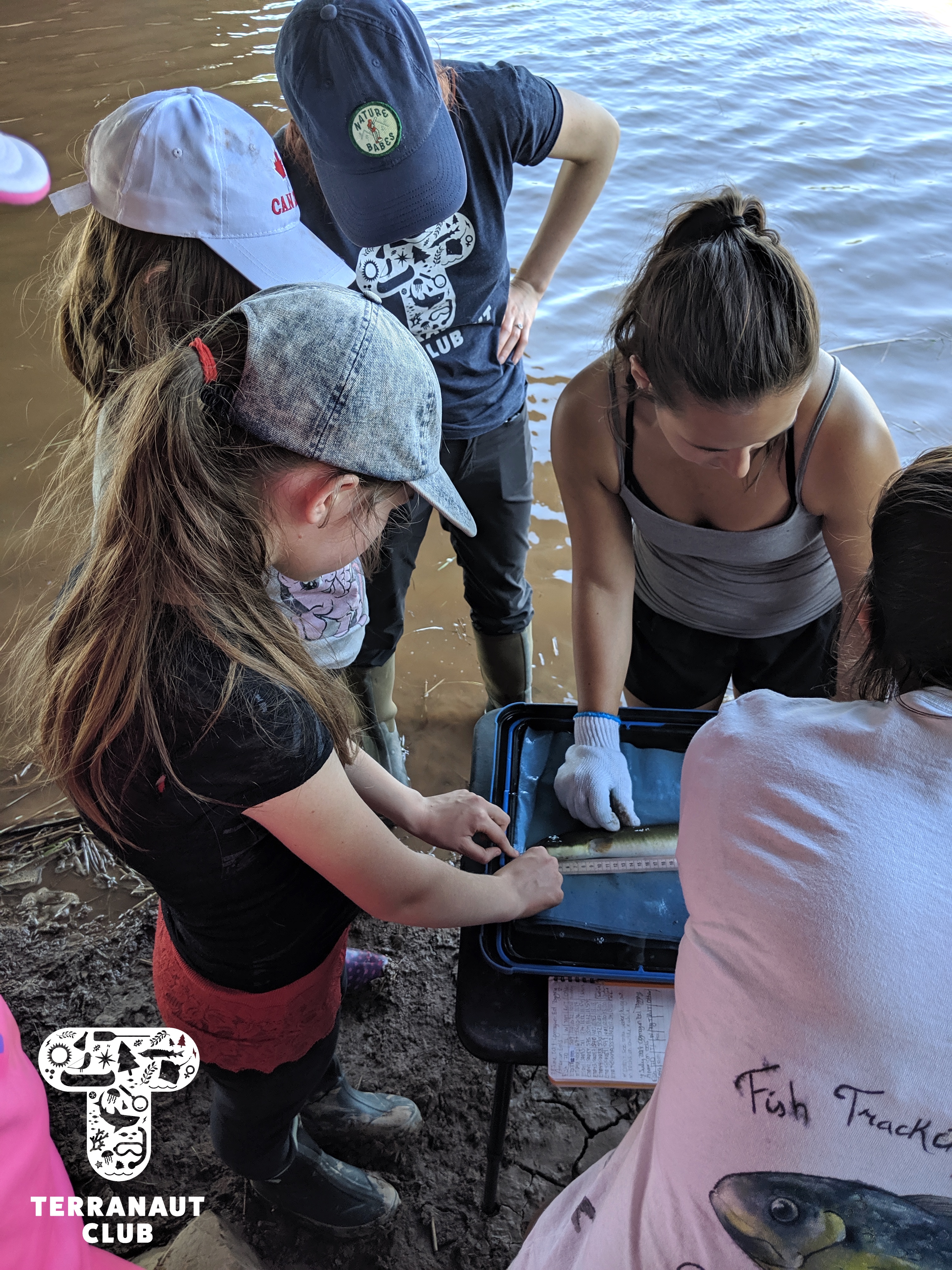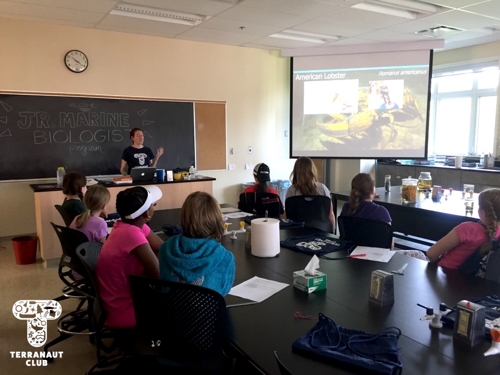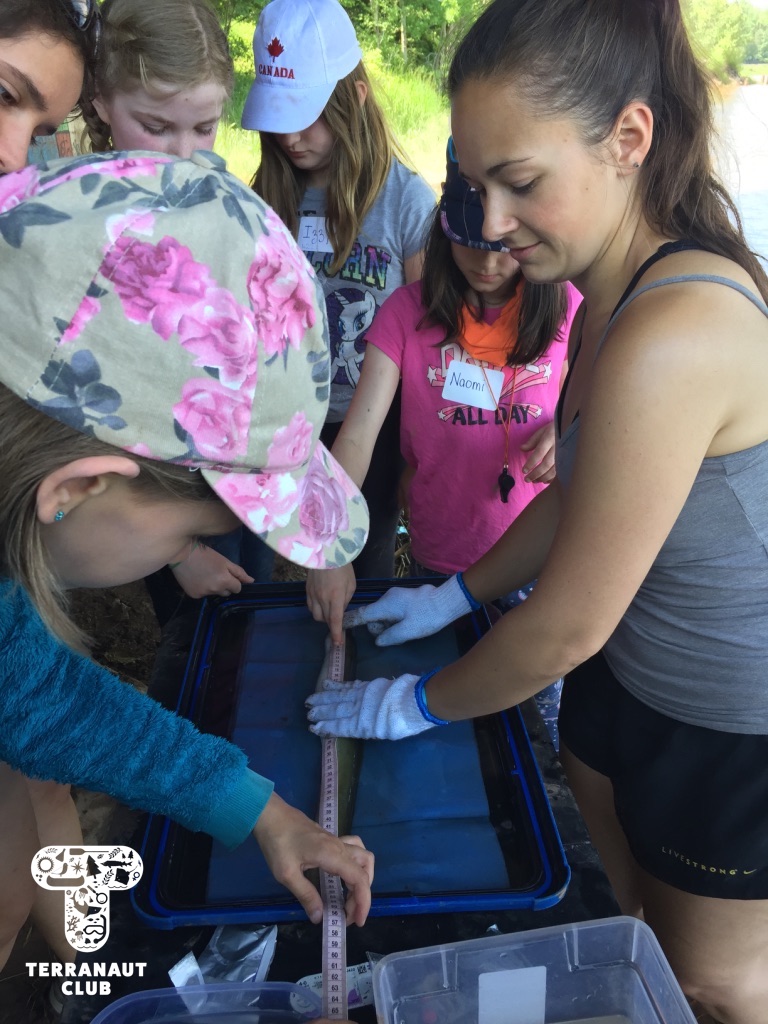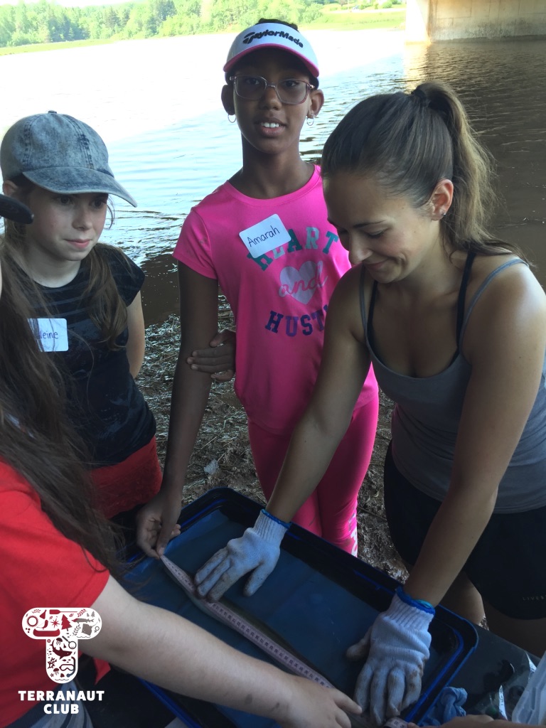 Our Junior Marine Biologist program took place in the Annapolis Valley on July 4th – 5th. We started at Acadia University in the Biology labs, where we were assisted by female Biologists from the Coastal Ecology Lab in making behavioural observations and collecting data from lobsters. We learned about the scientific method and answered questions like “which substrate does your lobster prefer? The rock or the sand?” and took a series of measurements. We then headed to the Cogmagun River in Centre Burlington, where we joined the Porter family on their fishing and research boat as they set and pulled in eel traps. Once caught, American eels were brought to the shore to measure and tag. Our participants were lucky to get to help measure the eels, and to see Coastal Ecology Lab Biologist Lindsay surgically implant acoustic tags into these threatened animals. We even caught a previously tagged eel (a “recapture”) from 2 weeks earlier! These tags help us learn about where the eels go and what types of habitat are important for their survival. Science is so cool!