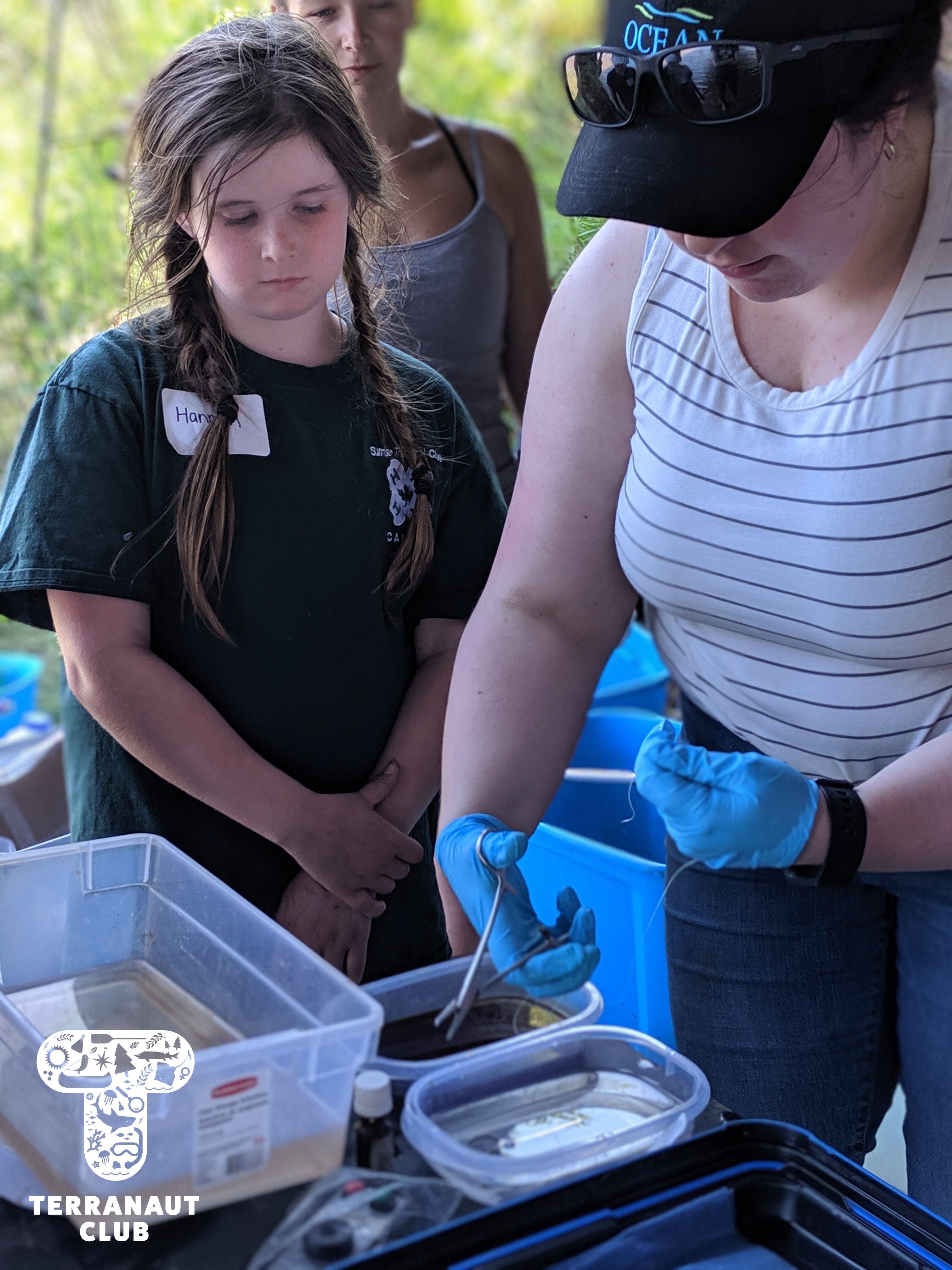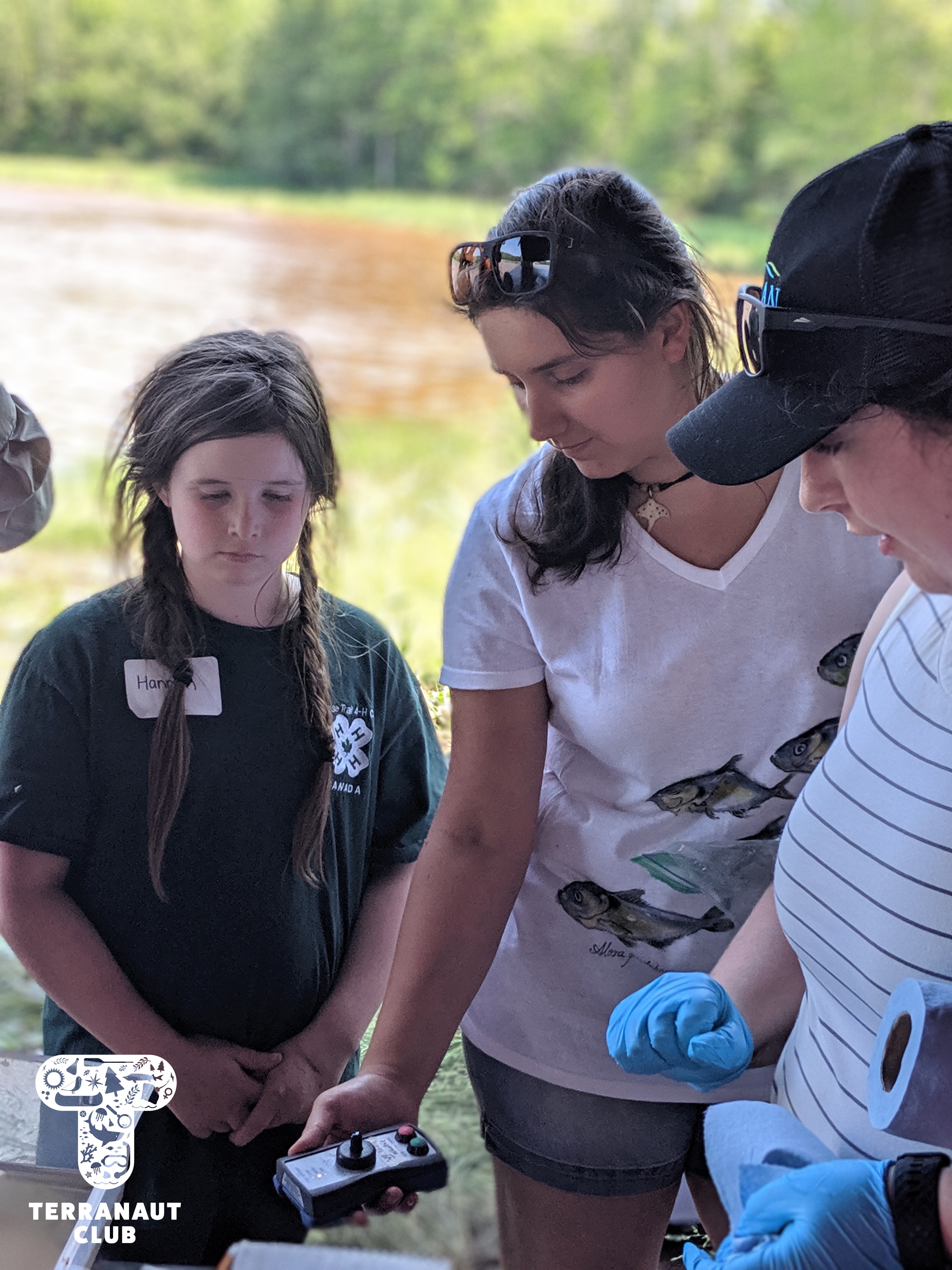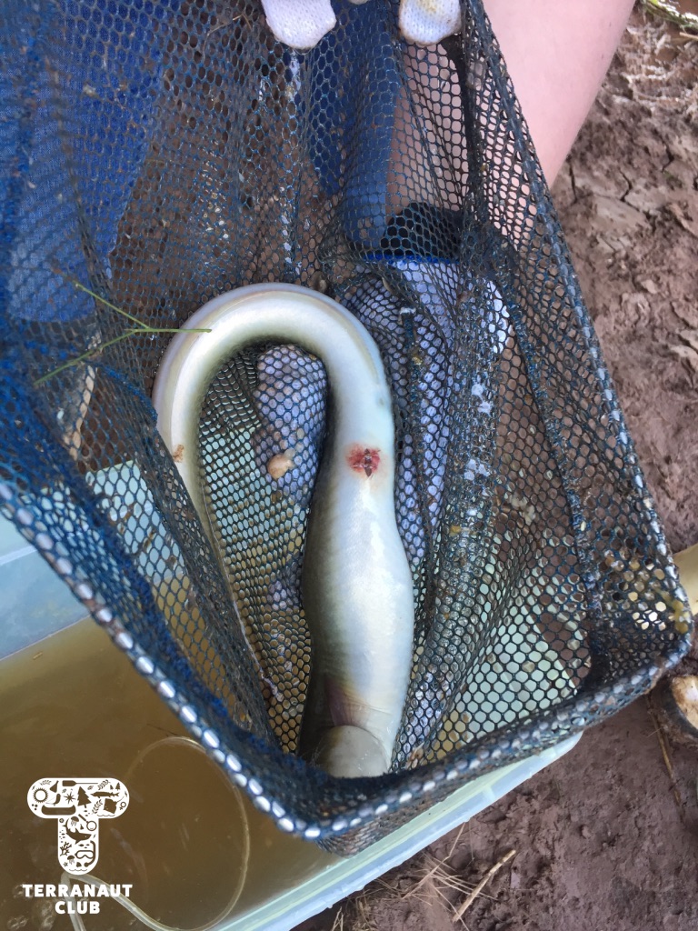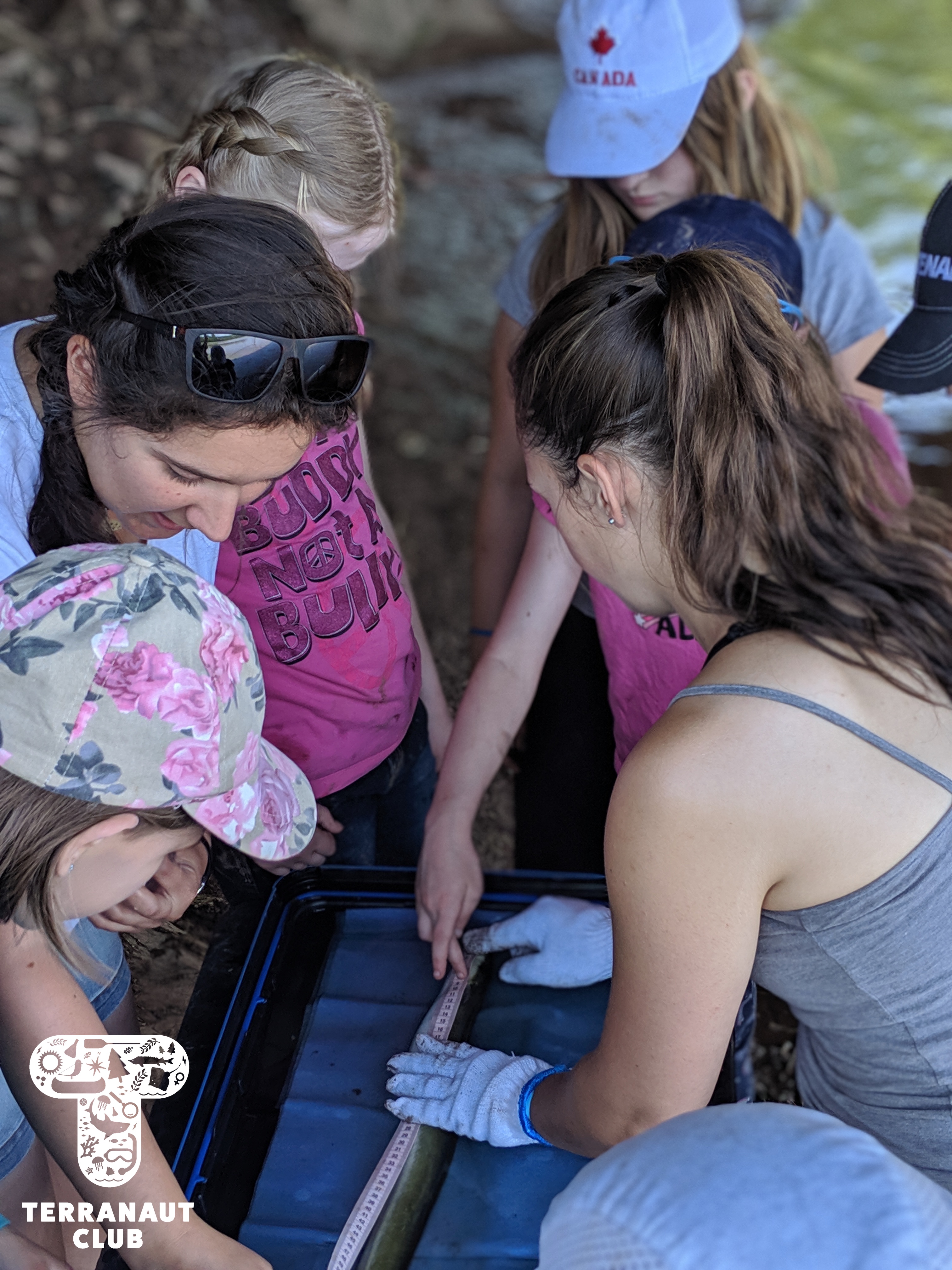 Our Junior Marine Biologist program took place in the Annapolis Valley on July 4th – 5th. We started at Acadia University in the Biology labs, where we were assisted by female Biologists from the Coastal Ecology Lab in making behavioural observations and collecting data from lobsters. We learned about the scientific method and answered questions like “which substrate does your lobster prefer? The rock or the sand?” and took a series of measurements. We then headed to the Cogmagun River in Centre Burlington, where we joined the Porter family on their fishing and research boat as they set and pulled in eel traps. Once caught, American eels were brought to the shore to measure and tag. Our participants were lucky to get to help measure the eels, and to see Coastal Ecology Lab Biologist Lindsay surgically implant acoustic tags into these threatened animals. We even caught a previously tagged eel (a “recapture”) from 2 weeks earlier! These tags help us learn about where the eels go and what types of habitat are important for their survival. Science is so cool!