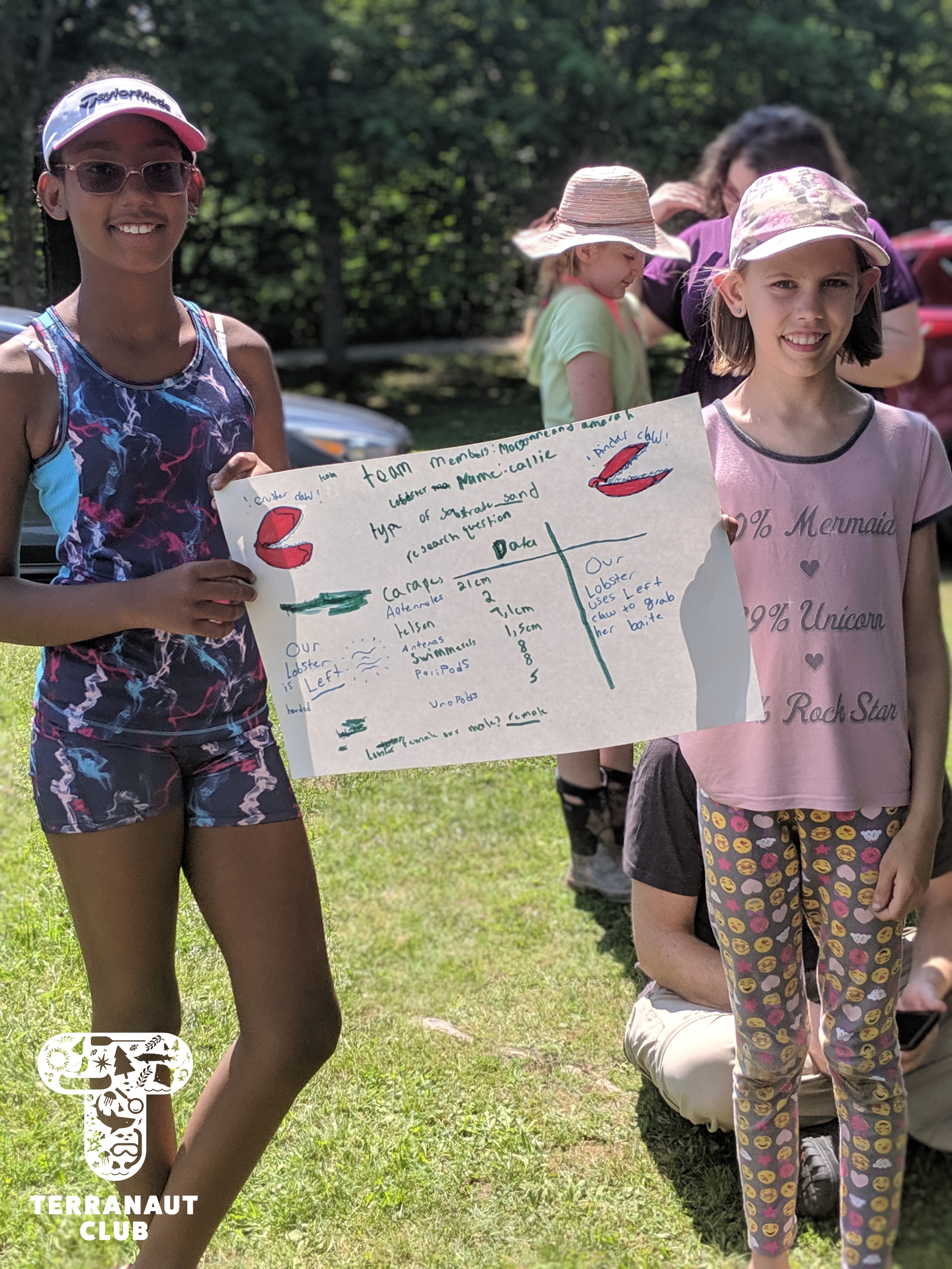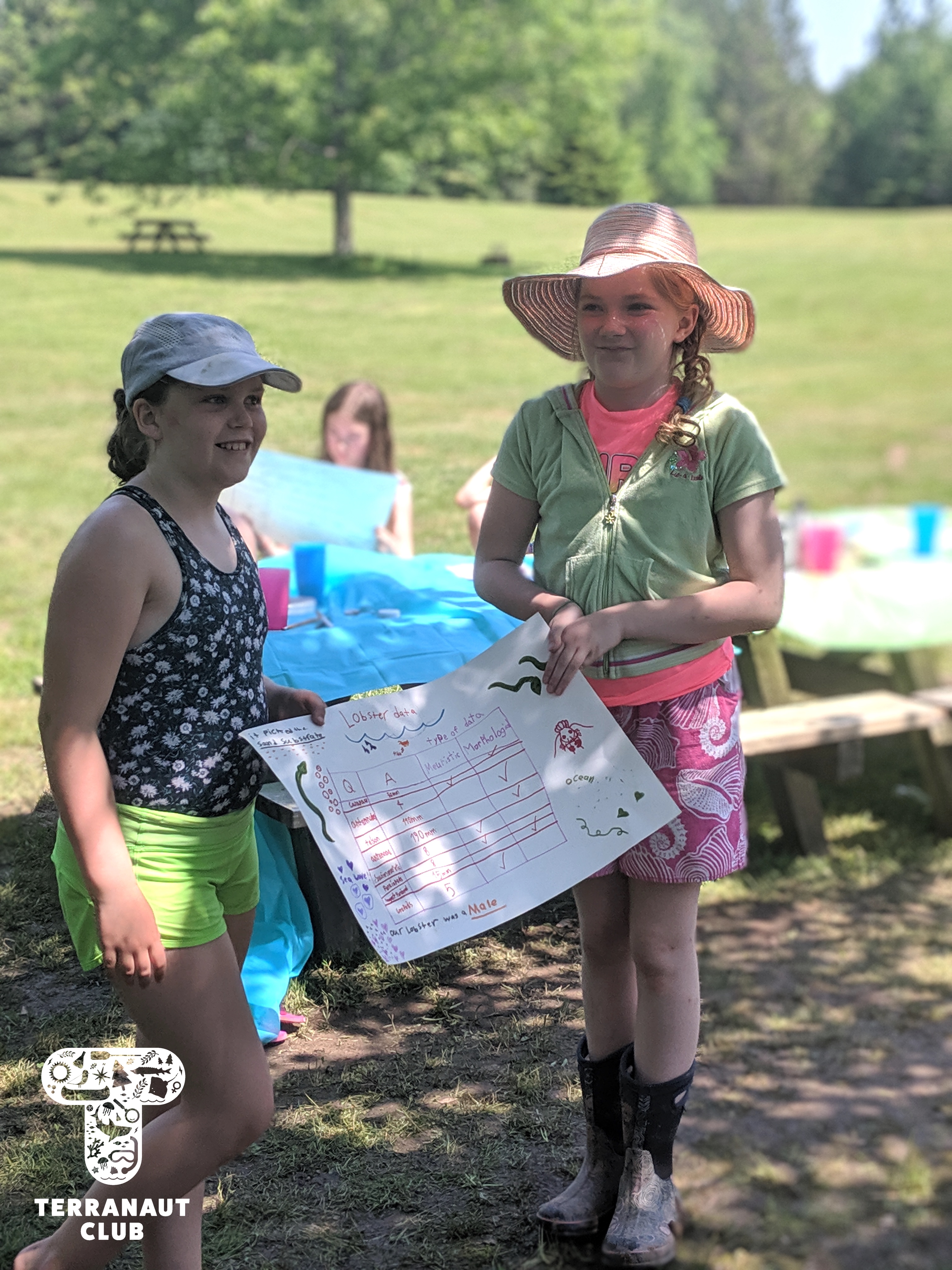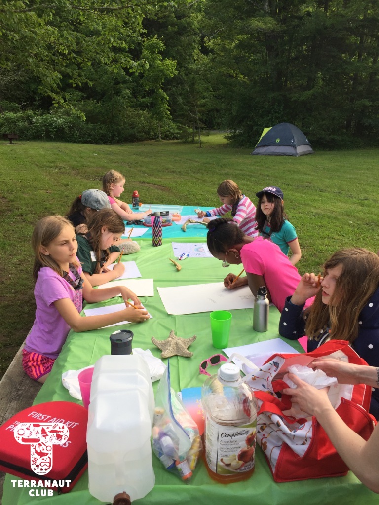 After this, we headed to Smiley’s Provincial Park to learn how to camp. We set up our tents and spent the evening practicing our scientific drawings of marine organisms (we had some artists in our midst!) The following morning, we went for a dip in Smiley’s ravine before having a discussion about marine pollution and how to reduce our consumption of single-use plastics. To finish up our program, we worked on posters of the data we collected from our lobster activity. Girls worked in pairs to present their results to our whole group, including parents.