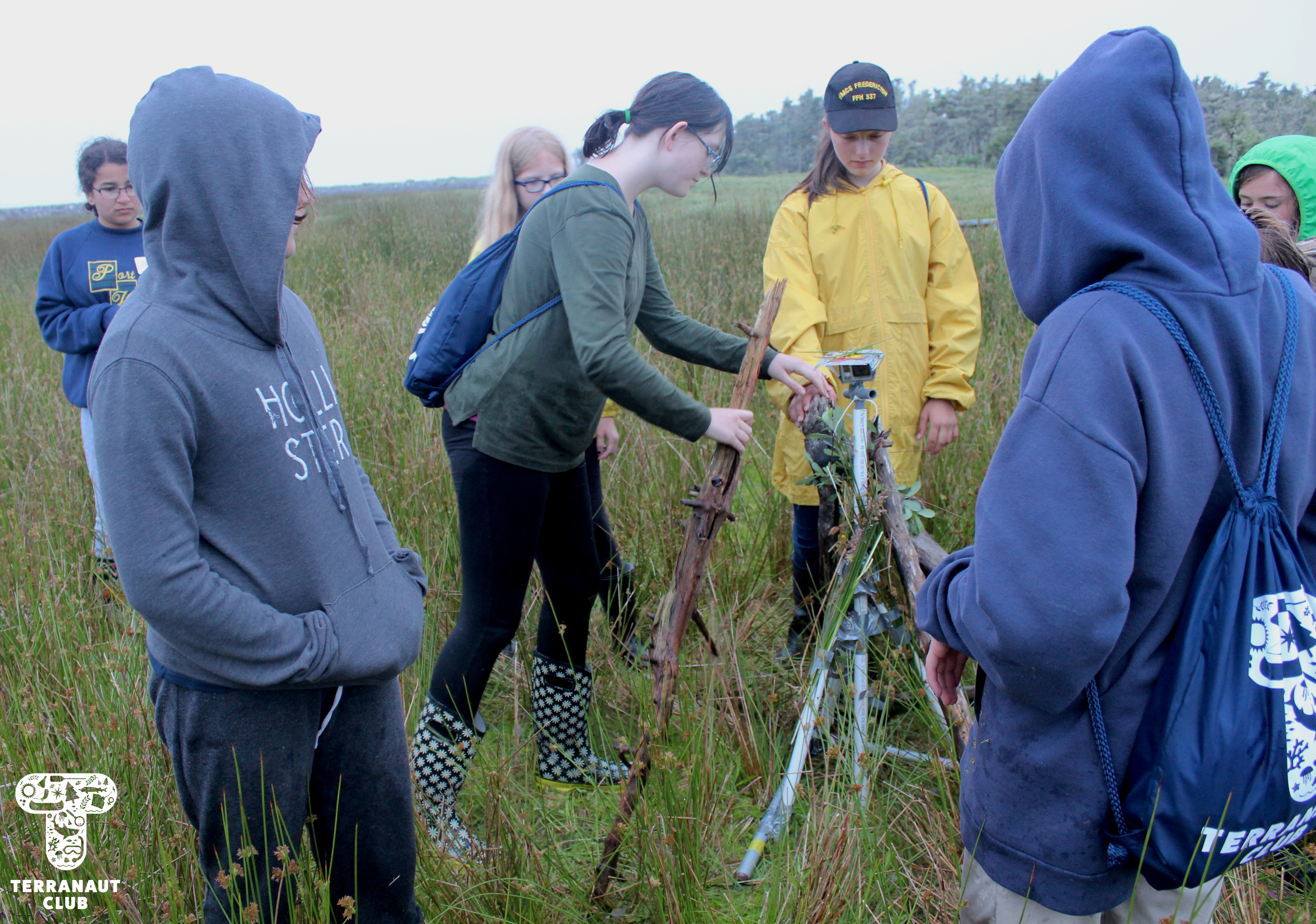 After lunch, our girls engaged in a series of nature appreciation activities with our guest Instructors and Naturalists Marina and Char. Our participants learned how to identify some of the Islandβs edible plants, including stinging nettle and beach peas, afterwards enjoying the pine and stinging nettle tea theyβd made in the forest. We then headed back to the southern point of the Island to build and deploy Baited Remote Video systems (BRVs) to try to record the Islandβs deer. A BRV is a structure typically made out of PVC piping that holds a camera and bait cage to attract whatever type of animal youβre studying. While usually used underwater, we adapted this design to sit in the Islandβs meadow. We experimented by leaving 4 types of food for the deer, including carrots, celery, apples, and tomatoes. While our GoPro sadly died before it could record the deer, we returned the following morning to find everything eaten but the tomatoes!