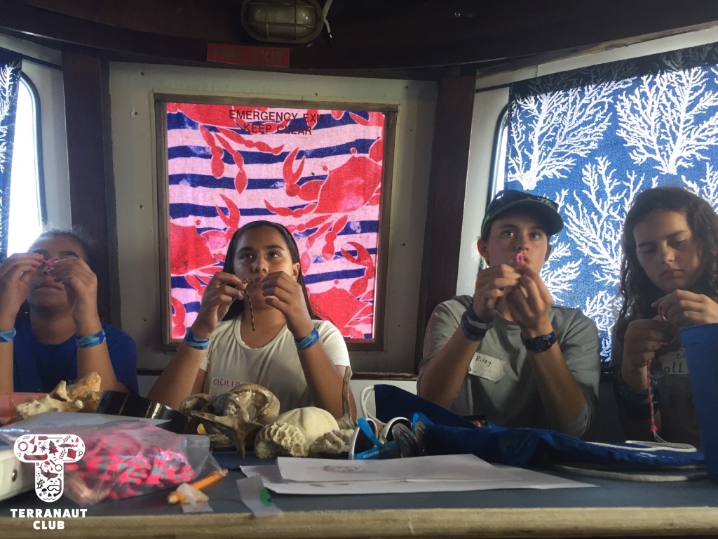 Our participants arrived mid-day on Saturday, and they had just a moment to settle into their bunks on Field School’s R/V Garvin before we headed out to learn how to snorkel. We explored seagrass beds, discussed the importance of mangrove forests, competed in small groups to see who could collect the most trash, and enjoyed the beautiful (but chilly) water! That evening, we had a group activity learning about climate change, environmentalism, and sustainability. We came up with excellent ideas on how to reduce our consumption of single-use plastics, and reuse materials.